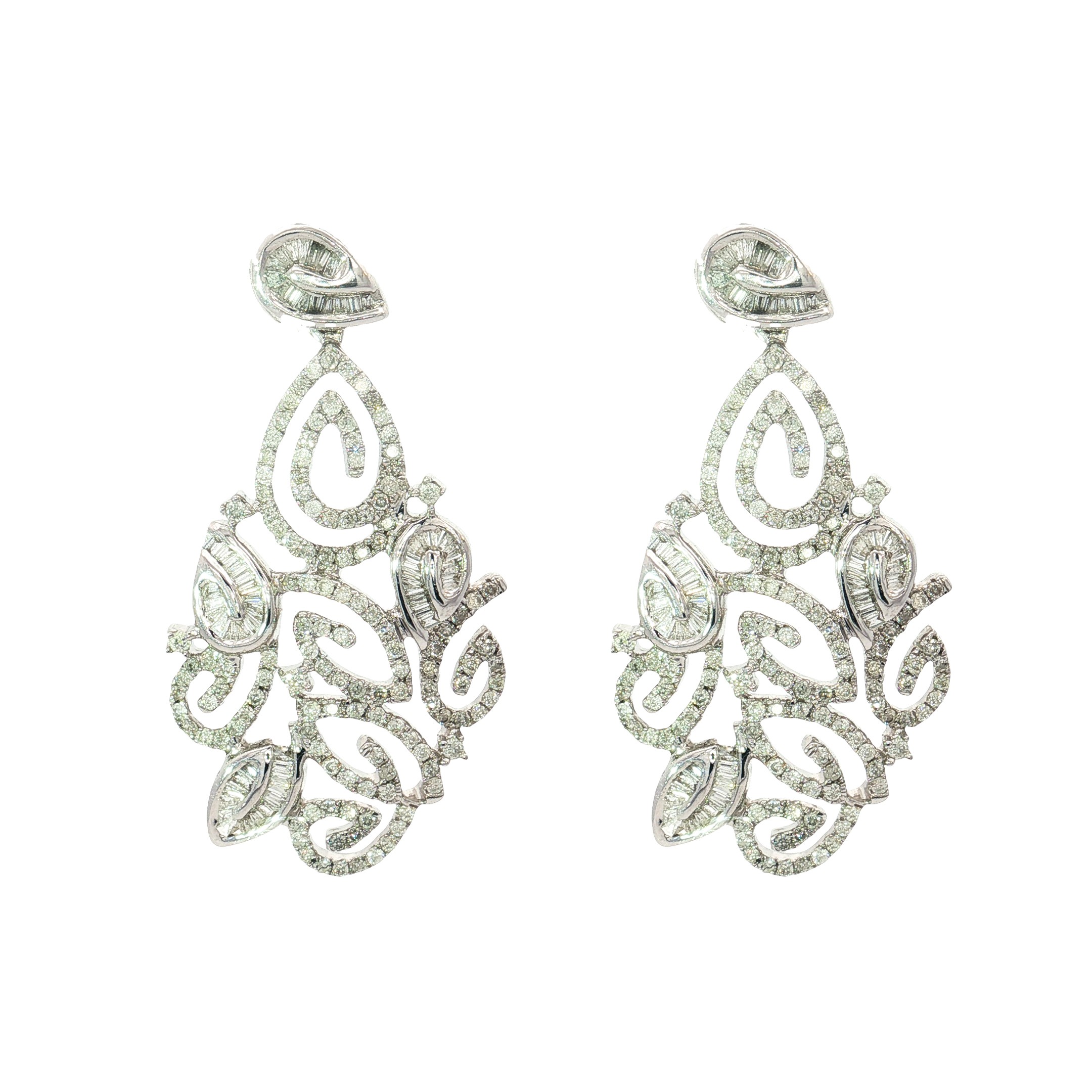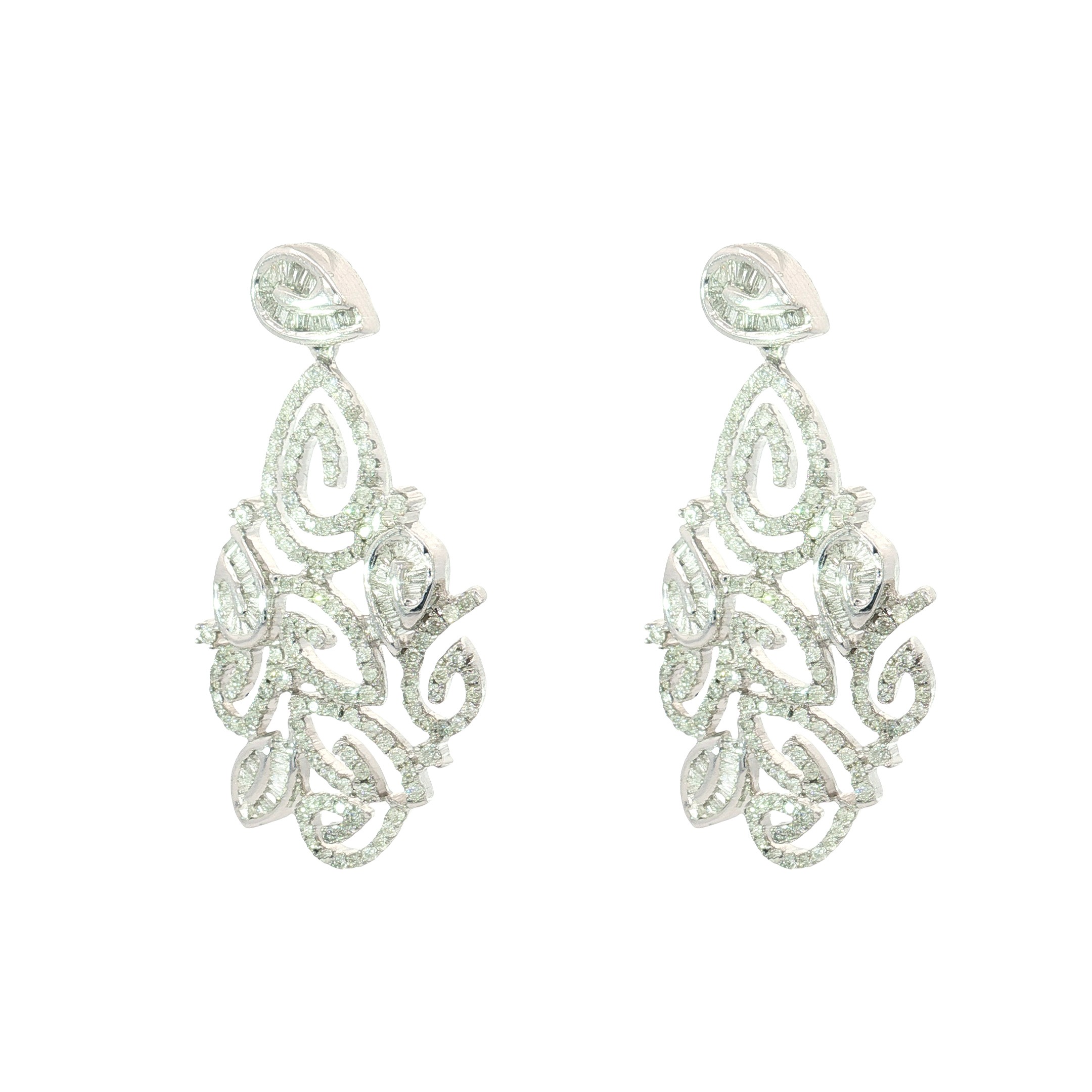 حلق فاخر وكبير من سليمان العثيم للمجوهرات مصنوع من ذهب أبيض عيار 18 ومرصع بماسات راوند بريليانت بالإضافة إلى أحجار باجيت كت فاخرة، بتصميم متدلي يمنح الحركة والجاذبية مع كل إطلالة. التصميم عصري وفاخر، أنثوي، ناعم، مميز، ويجسد الرقي والفخامة في كل تفاصيله. قطعة من المجوهرات السعودية بصياغة دقيقة ولمسة ملكية، مثالية للمناسبات الخاصة والحفلات الرسمية. الحلق يعكس أناقة، بريق، لمعة، تألق، تصميم مودرن، قطعة خالدة، هدية مثالية، فخامة ملكية، تصميم أنثوي راقي، طلّة ساحرة، فصوص براقة، أناقة، جمال دائم، قطعة مميزة تلفت الأنظار.