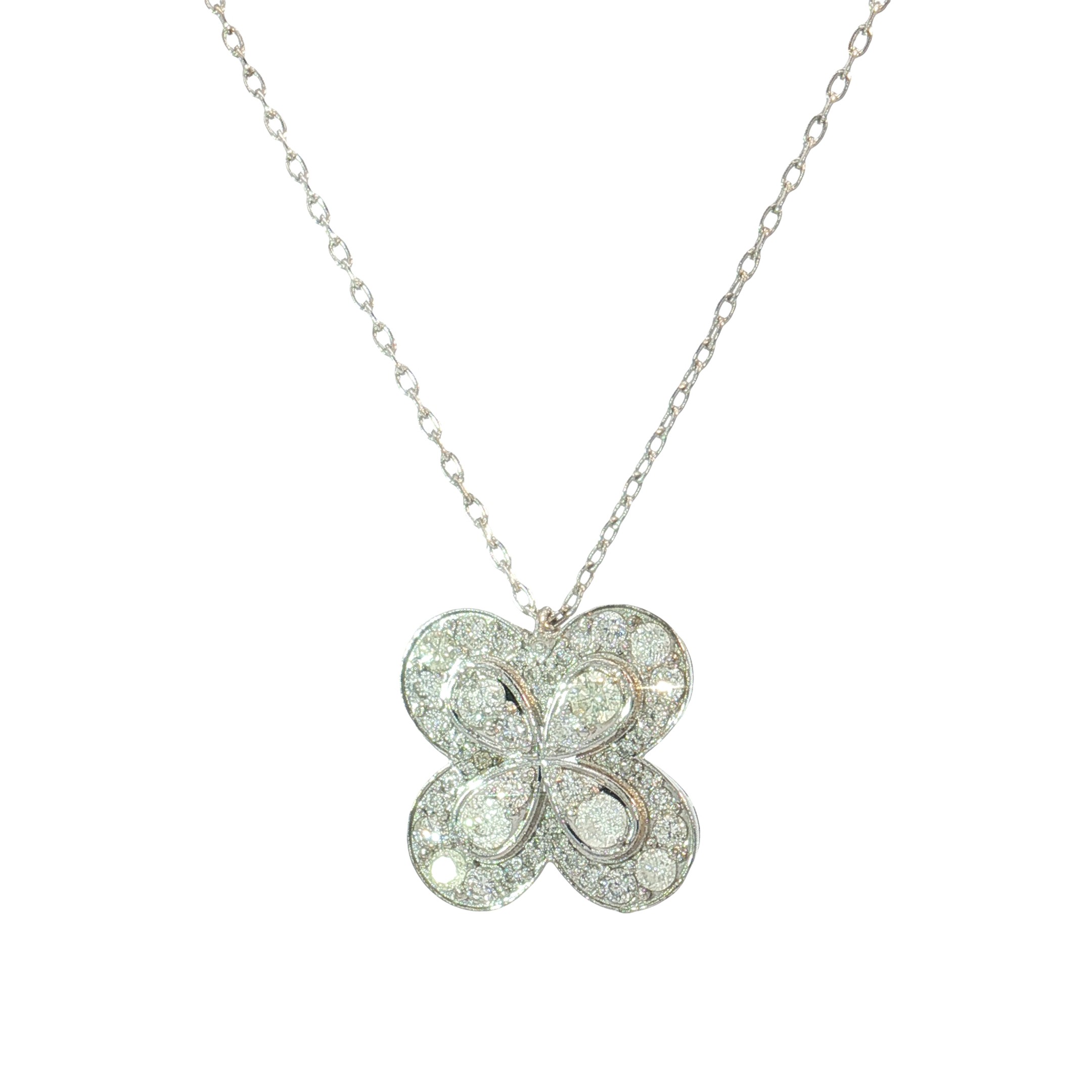 سلسال فاخر من ذهب أبيض عيار 18 يتوسطه حجر ماس راوند بقطع بريليانت على شكل وردة رباعية متقنة الصنع. تصميم السلسال رقيق وأنيق مع سلسلة ذهبية متينة، مثالي للاستخدام اليومي أو المناسبات الخاصة. القطعة تجمع بين لمعة الذهب وبريق الماس لتمنحك أناقة خالدة وفخامة لا مثيل لها. تصميمها يعكس سحر اللؤلؤ وتفاصيل دقيقة مع لمعان استثنائي وتألق يخطف الأنظار، ليصبح اختيارًا مثاليًا كـ هدية مميزة أو هدية عيد ميلاد. جودة الماس مع شهادة معتمدة تضيف براعة الصياغة، لتصبح القطعة رمز لوكس المجوهرات. حضور لؤلؤ أبيض وتفاصيل دقيقة تجعلها سلسلة لولو وسطية بطابع كلاسيكي وأنيق، مع تصميم بسيط يبرز فخامة وتفاصيل استثنائية، ويجمع بين ألماس دائري (Round Diamond) وماس راوند لتضفي لمسة فاخرة وبريق فاخر ونور الذهب في أي إطلالة. القطعة مثالية للمجوهرات السعودية وتضفي أناقة راقية وتألق لا مثيل له على كل مناسبة خاصة.